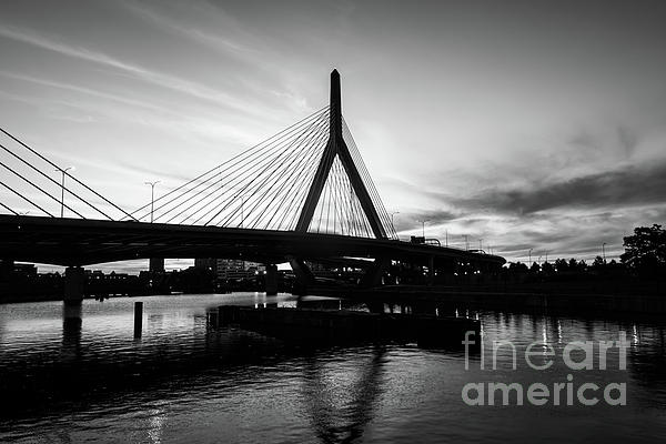 Boston Zakim Bunker Hill Bridge at sunset black and white picture. The Leonard P. Zakim Bunker Hill Memorial Bridge is a cable bridge that spans the... more