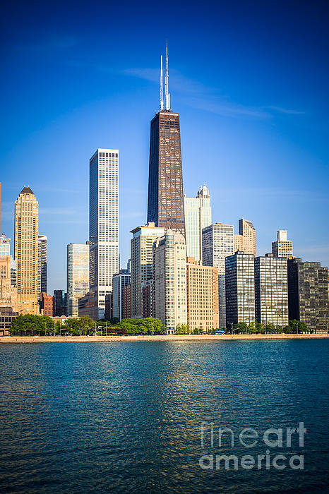 Chicago skyline with John Hancock Center Building. The John Hancock Center building is one of Chicago's most popular and recognizable skyscrapers. Image Copyright � 2010 Paul Velgos with All Rights Reserved.