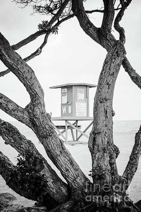 Newport Beach Wedge Lifeguard Tower W through trees black and white photo. The Wedge is a popular spot for surfers on Balboa Peninsula in Orange County Southern California. Photo Copyright ⓒ 2010 Paul Velgos with All Rights Reserved.